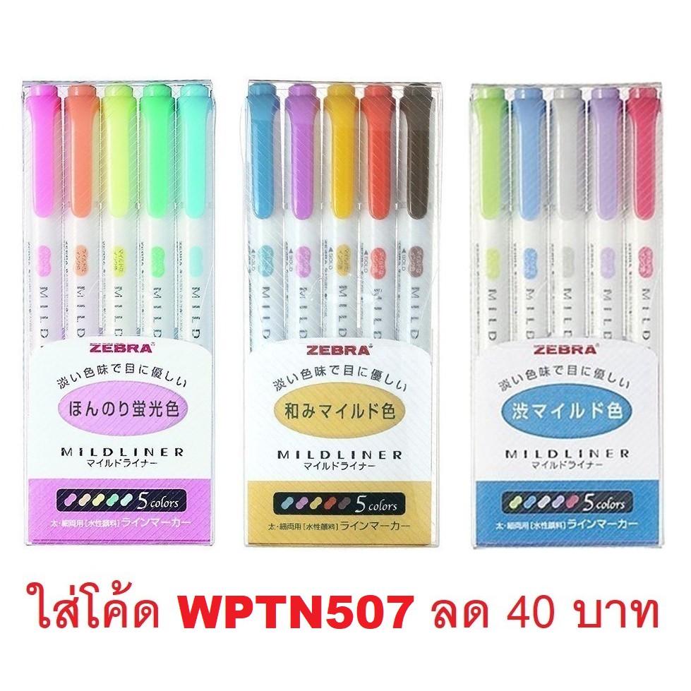 แจกโค้ดลด 40 บาท Zebra Mildliner set 5 แท่งพร้อมกล่อง สั่งซื้อได้ที่ไหน