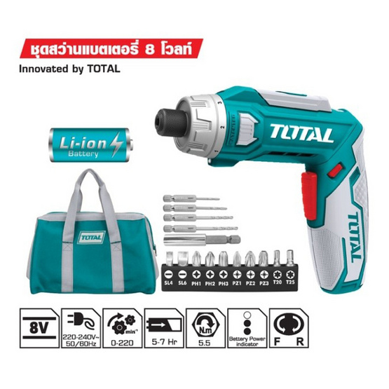 Total ชุดสว่านแบตเตอรี่ 8 โวลท์ แบต 2 ก้อน + แท่นชาร์จ รุ่น TSDLI 0801 ดีไหม